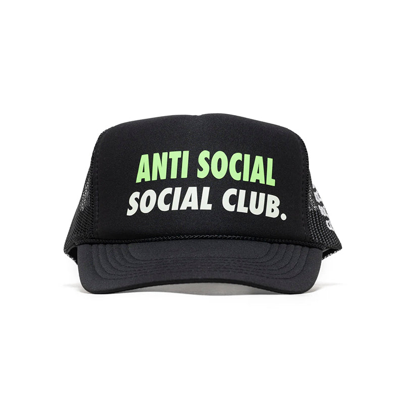 SPELL OUT TRUCKER CAP, Combina tus conjuntos con la gorra de camionero Spell Out de Anti Social Social Club. Hecha de poliéster, está confeccionada con una corona de espuma y paneles de malla. Esta gorra está decorada con la marca serigrafiada y bordada y detalles de ribete de cuerda a lo largo de la visera. Un cierre ajustable a presión y una visera curva completan el diseño